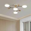 Nowoczesna, biała lampa sufitowa LED z drewnianymi akcentami, idealna do oświetlenia salonu lub kuchni. Lampa posiada kilka ...